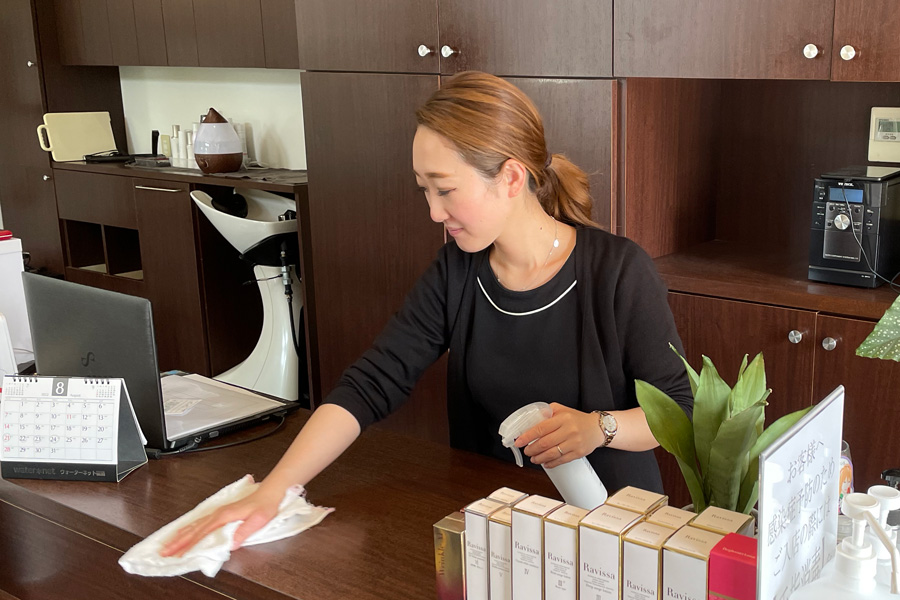 当店のサロンワークは、ヘアケアやスキンケアを中心にお客様の悩みに寄り添い、お客様との信頼関係を築くことを第一に考えます。